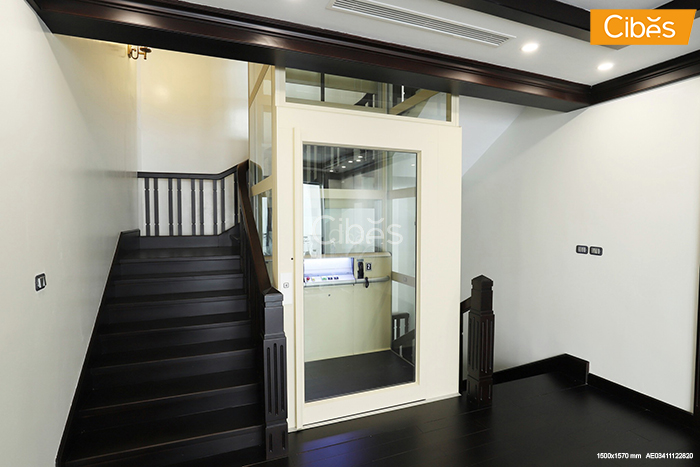 Thang máy gia đình Cibes A4000 có trọng tải nhỏ chỉ 300kg và chỉ cần đến 1m2 diện tích để lắp đặt