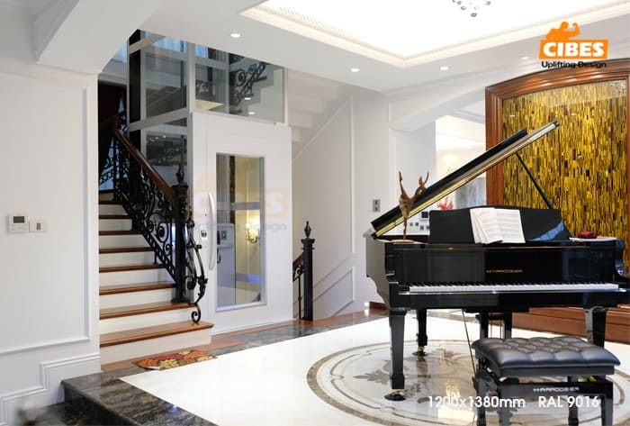 - Giới thiệu chung: Cibes A5000 là dòng sản phẩm thang máy trục vít sàn nâng, có vách giếng thang làm bằng thép hoặc bằng kính cường lực an toàn nhiều lớp với trên 248 màu để lựa chọn. Tải trọng thang máy: 400 - 500kg, tối đa 6 tầng thích hợp với nhiều công trình nhà ở.